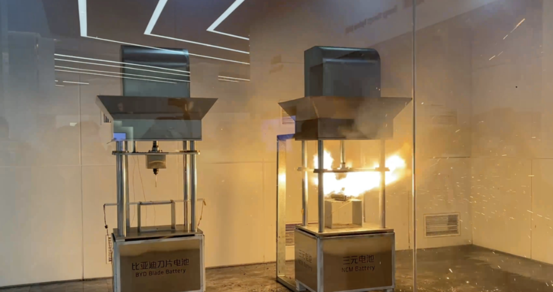 2020年春天的"刀片电池"发布会,王传福当众播放了一段针刺对比视频:三元锂电池爆燃的火光中,刀片电池平静得令人窒息。
