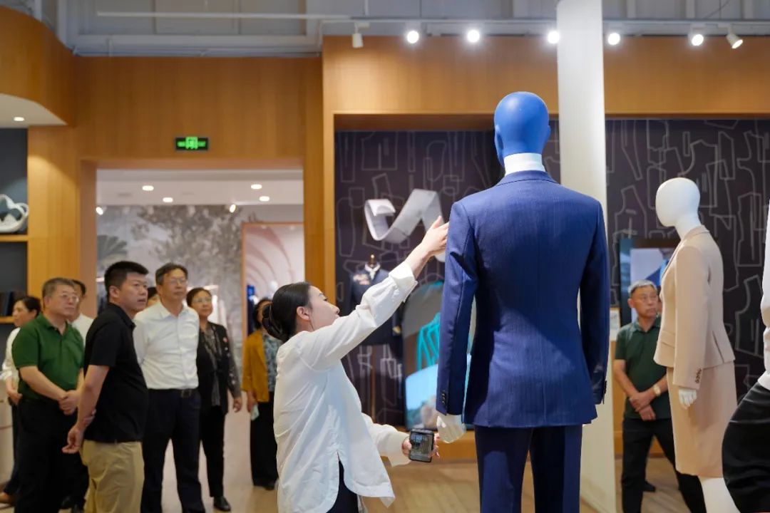 在酷特智能大规模个性化定制数智工厂内,代表们实地观摩了服装C2M柔性生产线。从AI驱动的数据采集、智能打版到自动裁剪,全流程的数字化闭环支撑起“一人一版、一衣一款,一件一流,7个工作日交付”的大规模个性化定制模式。