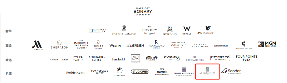 值得注意的是,为应对激烈的国内竞争,万豪已在持续调整在华酒店品牌矩阵,覆盖从酒店到长住公寓的全维度品牌。