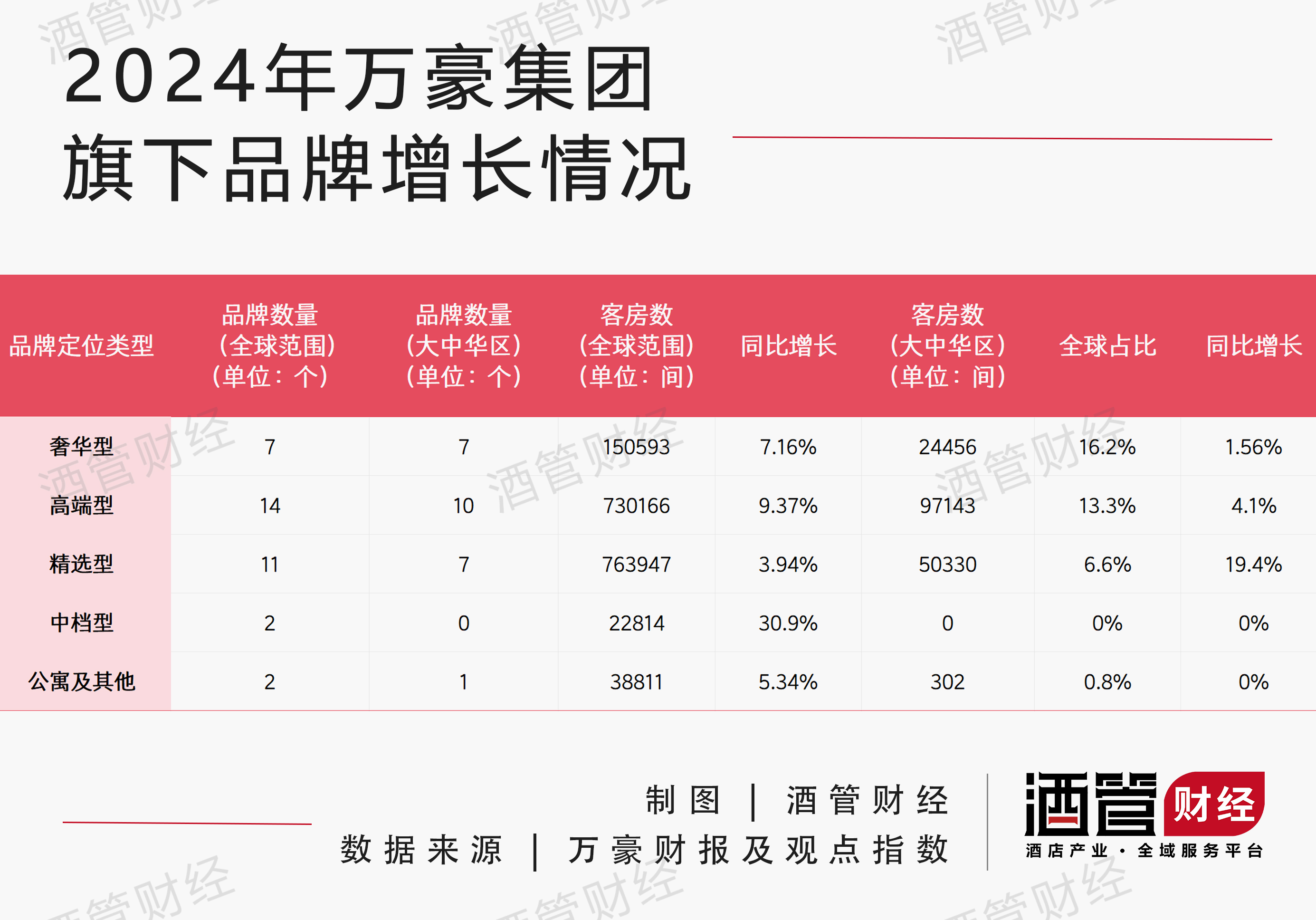 具体来看各品牌发展,据观点指数指出,2024年万豪大中华区旗下中档、奢华型品牌增长动能相对不足,精选型酒店表现突出,市场占比较少的服务式公寓仍有很大的增长空间。