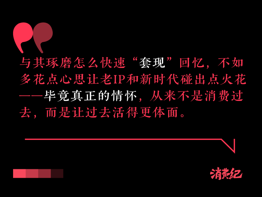 当年痴迷游戏的小孩,如今都已长大成人,掌握了消费大权,能随手为青春补票,消费心理早就不满足于单纯“买买买”了,要的是那种“爷青回”的颅内高潮。
