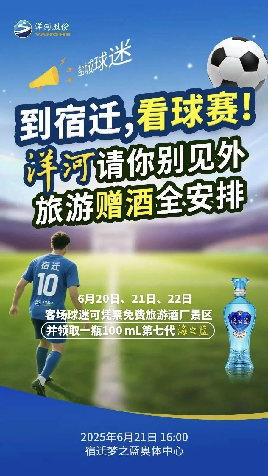 竞争对手今世缘(国缘)已经先发制人当上了赛事赞助商,洋河在先天优势不足的情况下,选择在文旅经济上发力。针对客场球迷,洋河推出了“旅游+赠酒”的专属福利,客场球迷可凭身份证免费游览包括洋河酒厂及双沟酒文化旅游区在内的13家重点景区,凭球赛门票领取100ml装的第七代海之蓝。