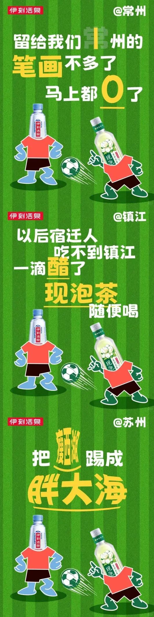 伊刻活泉也复制了“不同地域梗+产品特点”的思路,在常州的投放不仅有这辈子都过不去的“|州”梗,还不忘坚持cue品牌前段时间出圈的“都0”梗,让消费者不禁想起其携手陈都灵在成都打的“成都0”广告,又实现了一次用户对品牌的记忆复现。