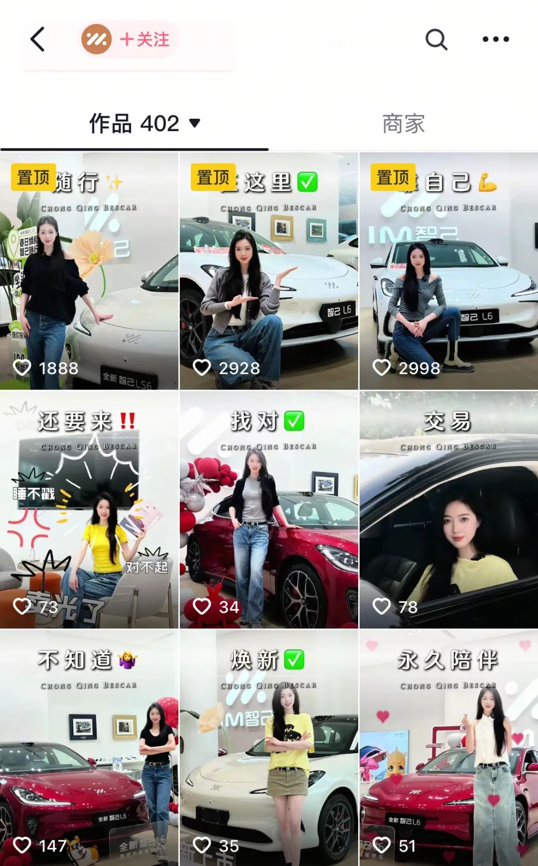 (智己汽车直营店抖音页面,封面设计比较统一)