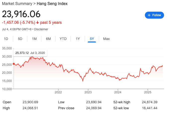 时间轴拉到2025,那种昔日的美好似乎回来了。7月6日,香港财政司司长陈茂波在其网志中表示,港股2025年势头持续向好,2025年上半年,恒生指数累计上升20%,升幅位列全球前三位,以点数计,是港股市场历来最大的上半年升幅。