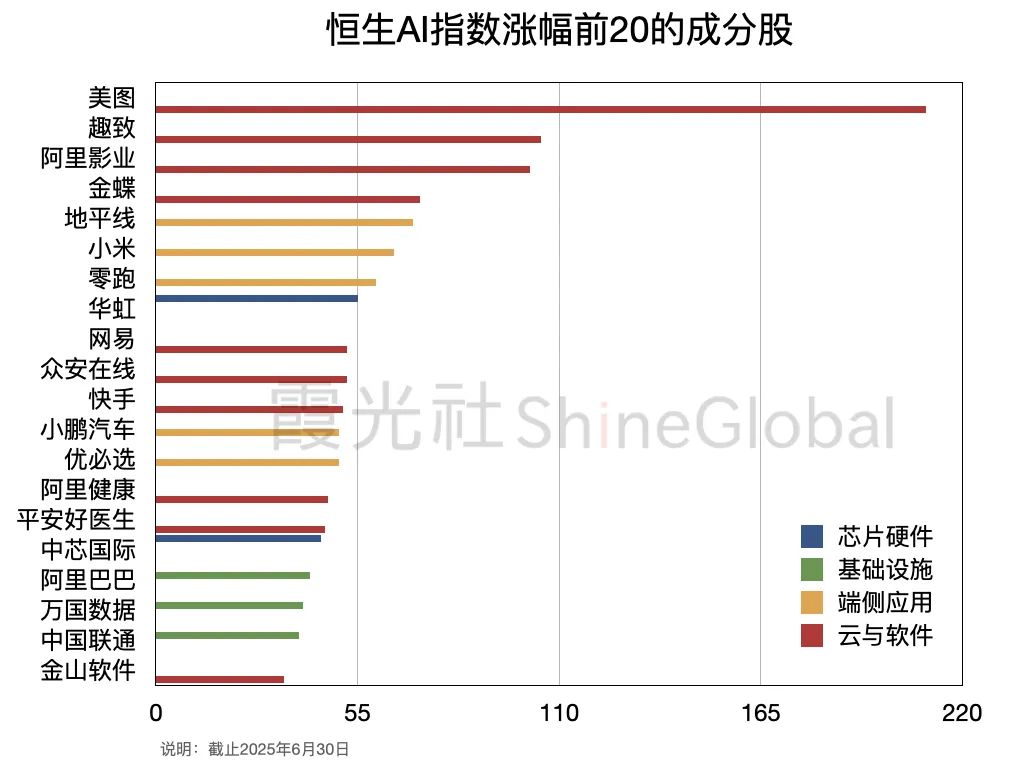 但在Deepseek横空出世之后,普通受众也开始看到了AI的实际作用。AI的产业价值,不再是技术空谈,而是向应用侧渗透,今年恒生AI主题指数涨幅靠前的,也主要是生成式AI在社交、营销、电影、游戏等领域的应用。