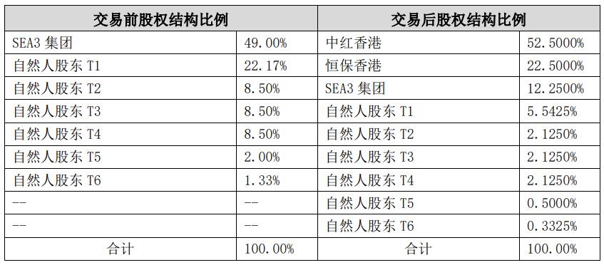 值得一提的是,中红医疗同意在股权转让后,由中红香港、恒保国际(由桂林恒保健康防护有限公司先期对其增资1000万元)以自有资金分别向SEA3公司增资5297.55万元、2270.38万元,合计增资7567.94万元(以上金额以等值外币或人民币按实时汇率结算,以实际结算价格为准)。