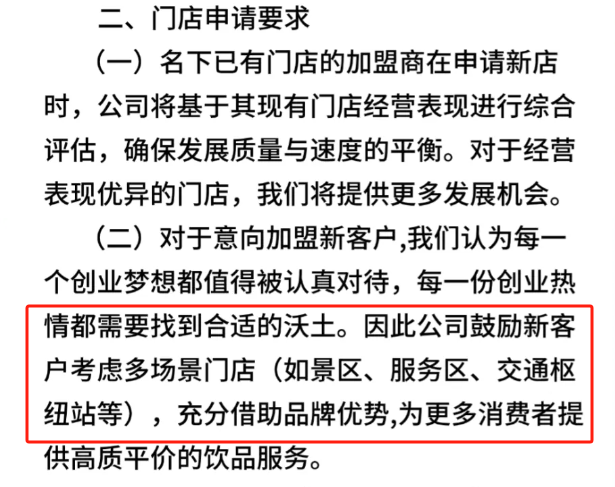 基于上述考量,蜜雪冰城近期将加盟政策调整为保护半径1KM,重点开发如景区、服务区、交通枢纽站等特殊场景门店。