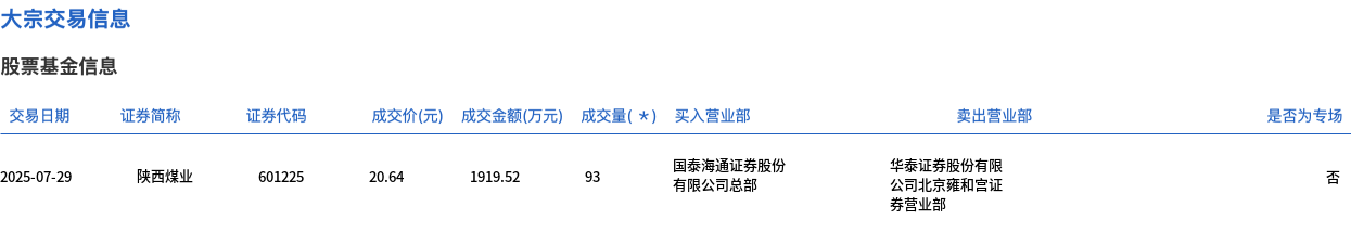 陕西煤业今日大宗交易平价成交93万股,成交额1919.52万元