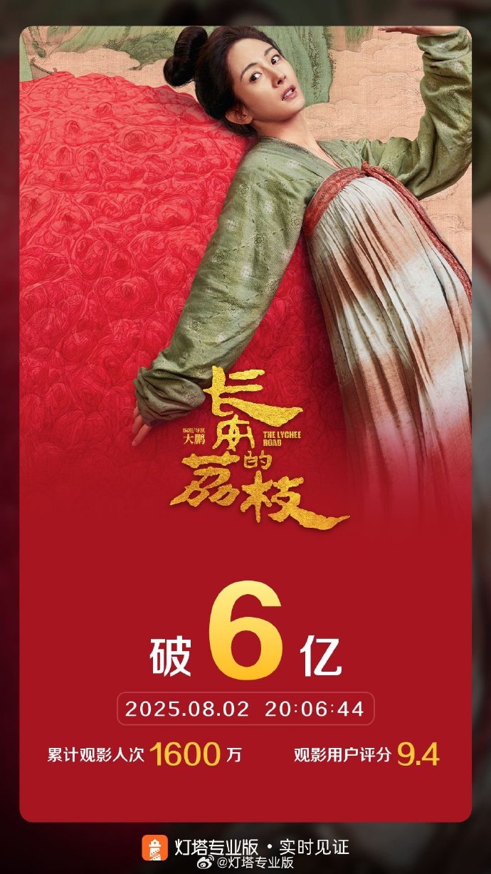 据灯塔专业版实时数据,截至8月2日20时6分,影片《长安的荔枝》票房突破6亿元。???