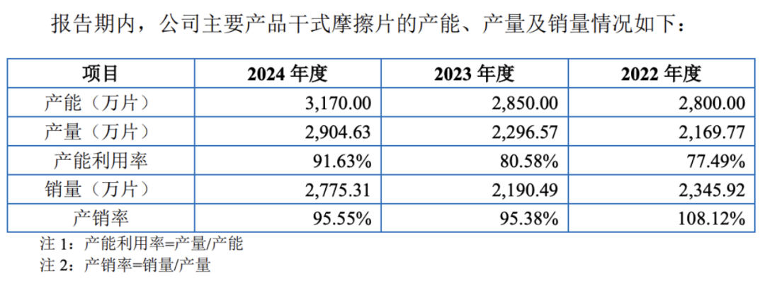 其中,干式离合器摩擦片是科马材料的核心收入来源。据《招股书》,2022年至2024年,科马材料干式摩擦片销售收入占主营业务比重高达96.9%、96.8%和97.1%,几乎支撑起公司全部业绩。相比之下,新拓展的湿式摩擦片业务规模尚小,2022年5月才开始投产销售,在报告期内贡献的收入比例微乎其微。