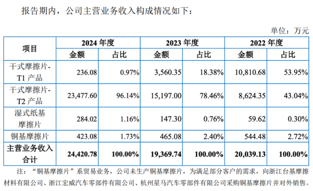 02 年入2.5亿,干式摩擦片营收占比超97%
