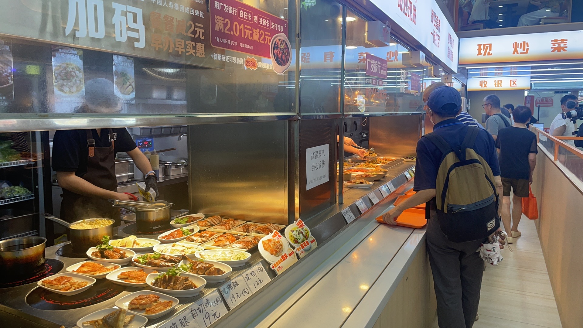 8月7日中午饭点,界面新闻记者走进广州桐乐大塘街社区饭堂(长者饭堂)看到,白切鸡、卤鹅腿、青菜等菜品琳琅满目,不少长者排着队有序挑选菜品。界面新闻记者了解到,通过整合政府补贴与银行优惠,老年人用餐成本降低。