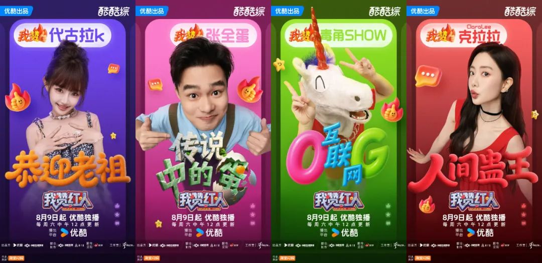 由此可看到《我赞红人》还是尽可能从不同世代、不同平台的中国网红里网罗了有看点的话题艺人,节目促成“几代中国网红华山论剑”的竞技火药味是相当足的,是长视频平台很少见的用长综艺赋能短视频红人朝阳赛道的创意型项目。