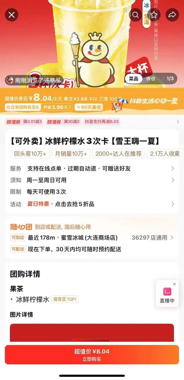 在抖音直播间蹲守几天后我发现,茶饮次卡主要包括两种: