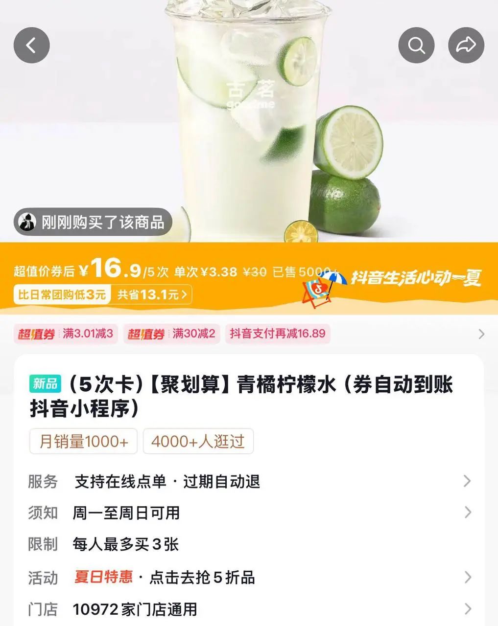 整个过程中,抖音成为我的旅行搭子。它帮助我用更低的时间与金钱成本,得到了更好的线下消费体验。一些没有用完的茶饮次卡,我打算回北京后继续使用——起码喝到中秋,是够了的。