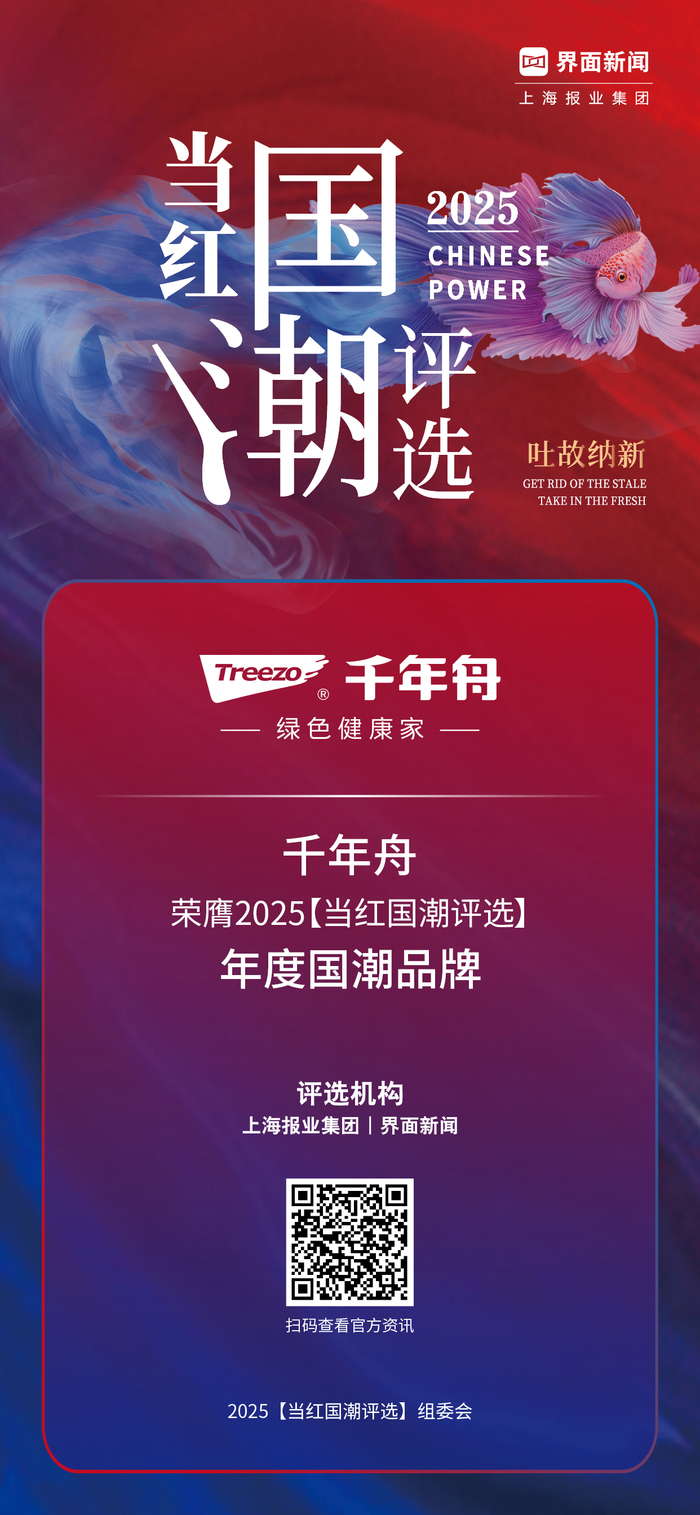 9月24日,上海报业集团|界面新闻主办的2025【新消费盛典】圆满落幕,在活动中正式公布了2025【当红国潮评选】的获奖品牌。本次评选不仅是对过去一年国潮品牌辉煌成就的回顾,更是对未来国潮发展趋势的一次前瞻,鼓励更多品牌以更加开放的姿态,探索国潮美学的无限可能,共同书写东方美学新篇章,让国潮之光继续闪耀全球。经过为期5个月的角逐,最终决出终榜名单。千年舟凭借科技创新与文化赋能的深度融合,荣获2025【当红国潮评选】年度国潮品牌。