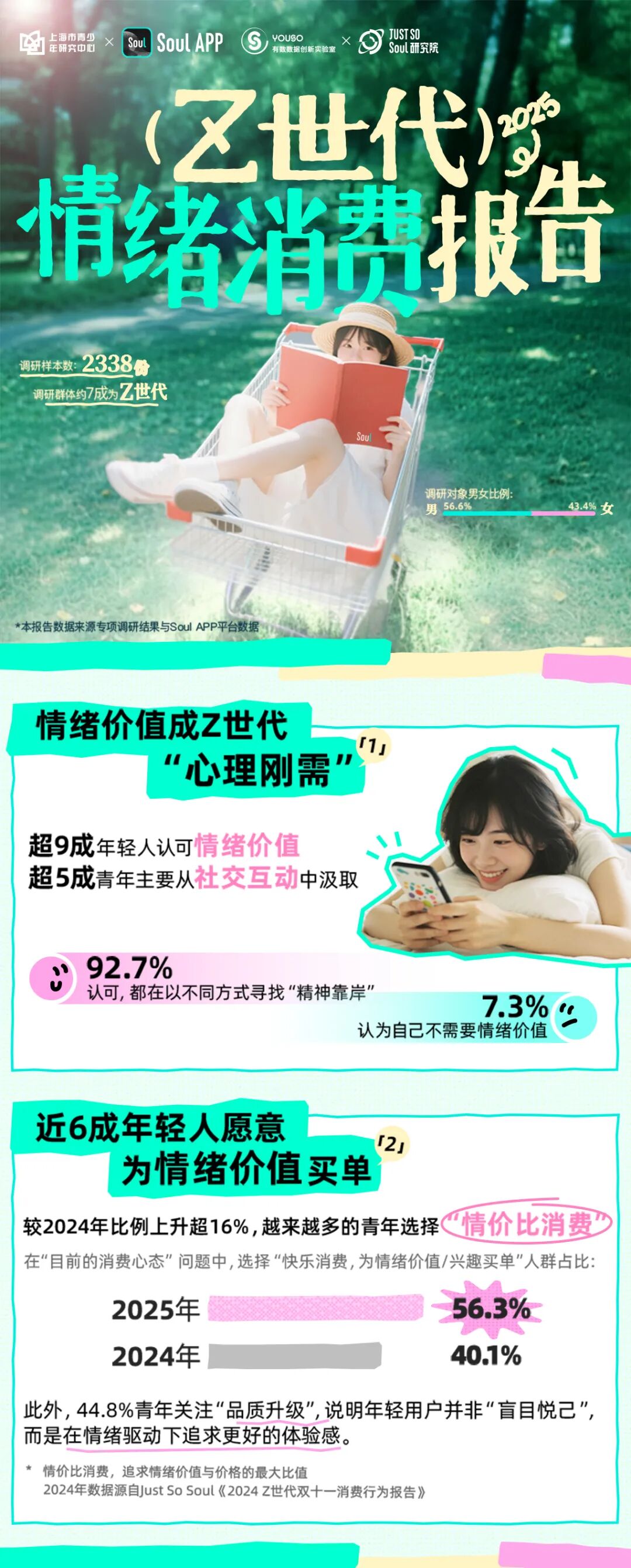 9月5日,上海市青少年研究中心联合Soul App发布《2025 Z世代情绪消费报告》,聚焦年轻人情绪消费的兴起轨迹与深层逻辑,呈现“情绪消费新场景”,解析“情绪消费新姿势”,追踪“情绪消费新势力”,尝试描摹关于Z世代(泛指“95后”“00后”)如何利用消费构建情感支持网络、维系心理韧性的真实图景,旨在洞察青年心态、理解消费变迁,为构建更友好的青年发展环境提供数据洞察。