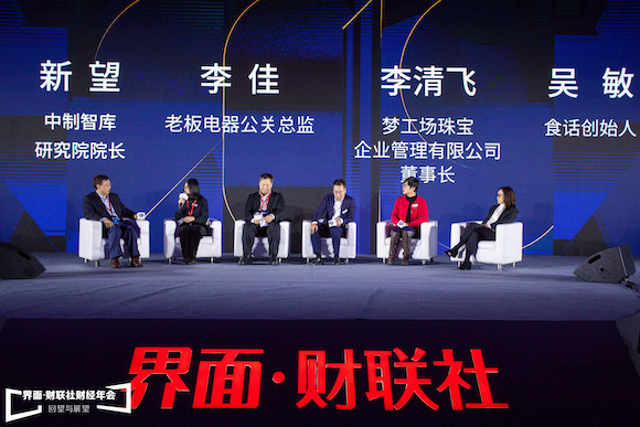 在圆桌论坛《消费新生代,当下与未来》,中制智库研究院院长新望先生担任主持嘉宾,与老板电器公关总监李佳女士,梦工场珠宝企业管理有限公司董事长李清飞,食话创始人吴敏女士,中手游董事长兼首席执行官肖健,上海奥美集团总裁张曼华女士探讨了在中国人均收入不断提高的背景下,企业针对新生代群体的消费特征与偏好、消费场景的改变,所作出的相应调整。