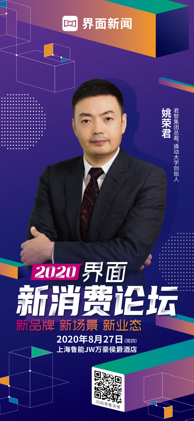 君智集团总裁、撬动大学创始人姚荣君将出席8月27日由上海报业集团l界面新闻主办的【2020界面新消费论坛】并发表主题演讲——新消费时代的新动力新潜力。据悉,本届论坛将于上海鲁能JW万豪伯爵酒店举行,届时观众可通过十大直播平台同步观看嘉宾精彩分享!(点击“直播平台”提前收藏)