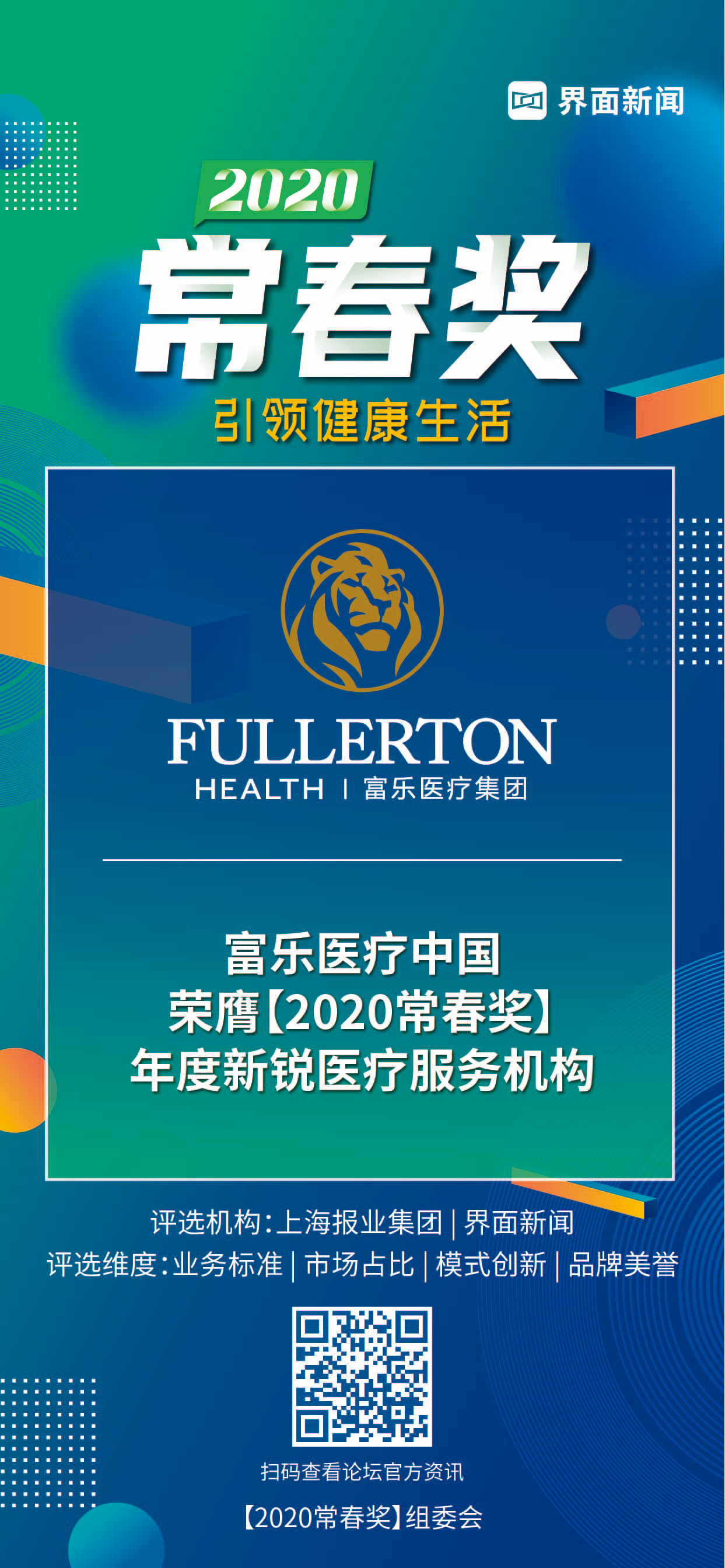 8月27日,上海报业集团l界面新闻在上海鲁能JW万豪侯爵酒店举办了【2020常春奖】颁奖典礼,并正式公布了本年度获奖名单。围绕“引领健康生活”这一核心宗旨,来自于医疗保险、医疗科技、医药零售、健康检测、实践创新等领域优秀企业,夺得了20项年度大奖。富乐医疗中国凭借其高品质的医疗健康服务,荣膺年度新锐医疗服务机构大奖。