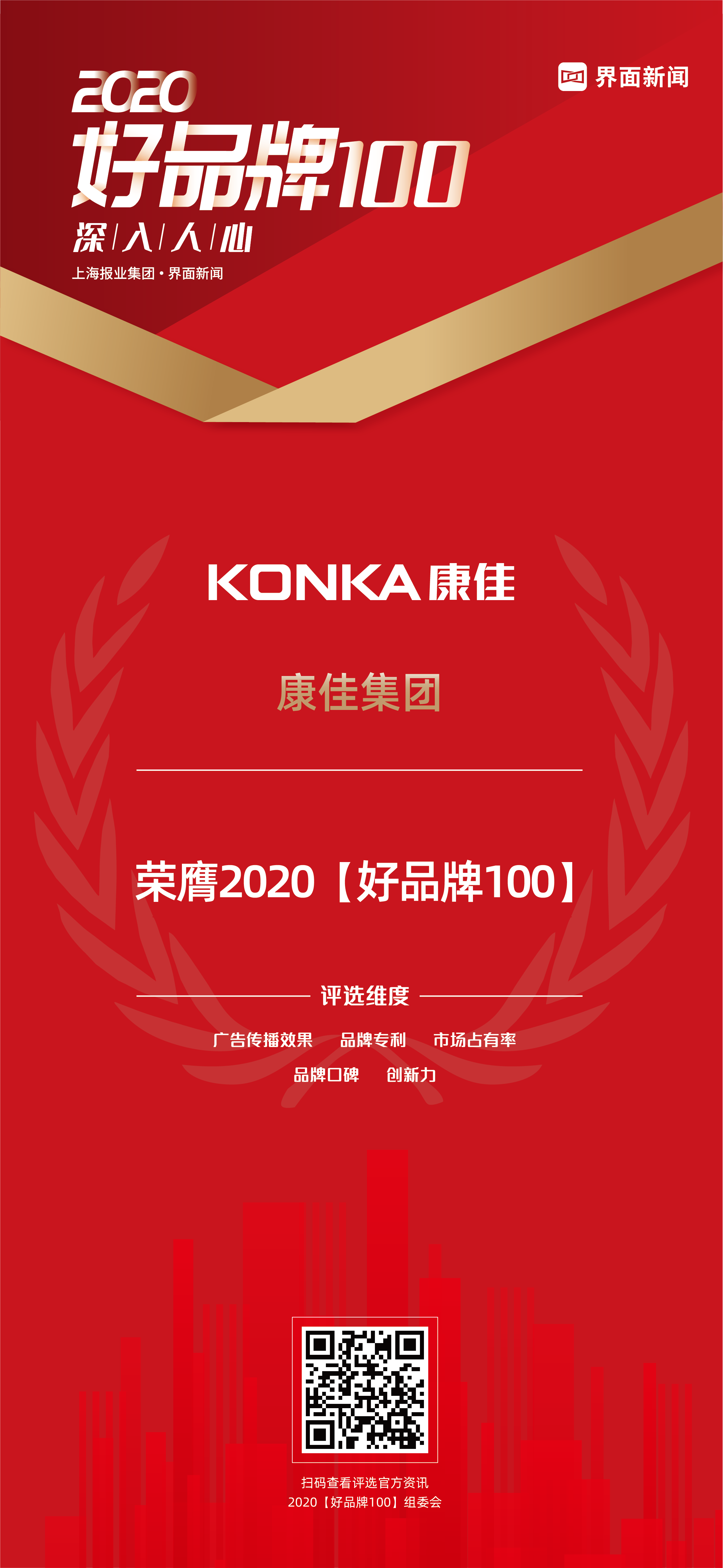 【2020好品牌】通过界面新闻在财经媒体中的领先影响力,秉承专业性与权威性,讲好品牌故事,提升品牌声量,挖掘品牌价值,打造拥有核心竞争力、持续创新、面向国际的“好”品牌。评选通过数据库筛选,网络投票,专家评审等环节,除取各行业中取票数榜首作为100个“好”品牌外,另设提名奖,作为冲刺主榜的品牌激励。