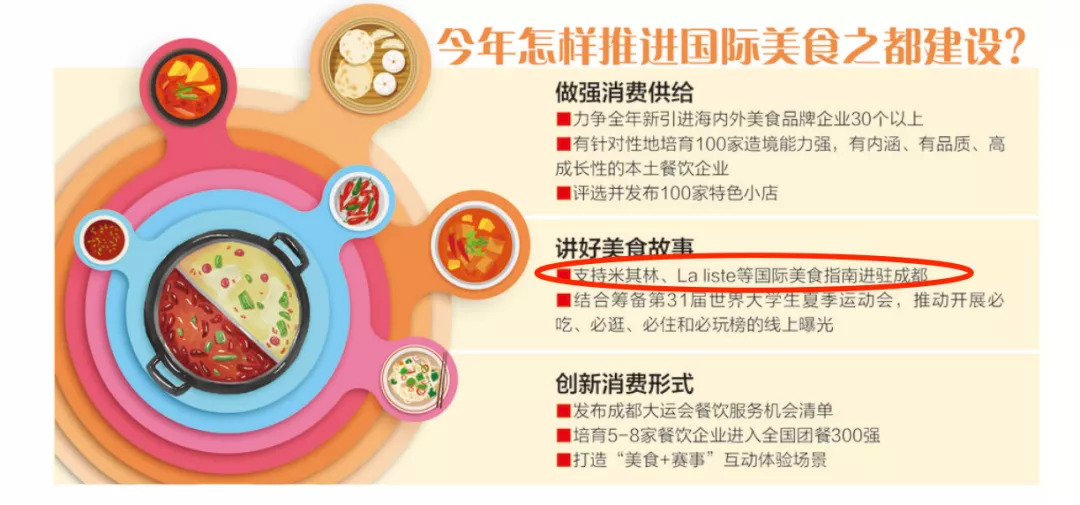 事实上,去年印发的《成都市推进国际美食之都建设2020年工作计划》就明确提到,提升成都美食国际话语权,积极引进权威美食评级机构,支持米其林、La liste等国际美食指南进驻成都。