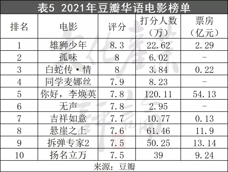 根据表5,我们并不能简单的说,打分人数不超过4万的《白蛇传·情》一定比打分超过120万人的《你好,李焕英》的评分更高,口碑更好。