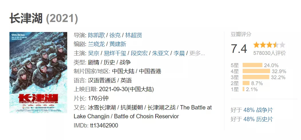 《长津湖》能创造新的票房记录,映前、映后的讨论度居功至伟。上映前的“京玺组合”、疫情耽误拍摄、被誉为暑期档的救世之作、重新定档等,上映后的朝鲜老兵分享战争经历都引发了广泛的话题讨论。注意力经济时代,吸引观众注意力、让观众参与讨论,能对票房产生巨大的影响力。