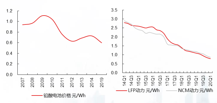 图5:铅酸电池和锂电池价格(元/Wh),资料来源:GGII,长江证券