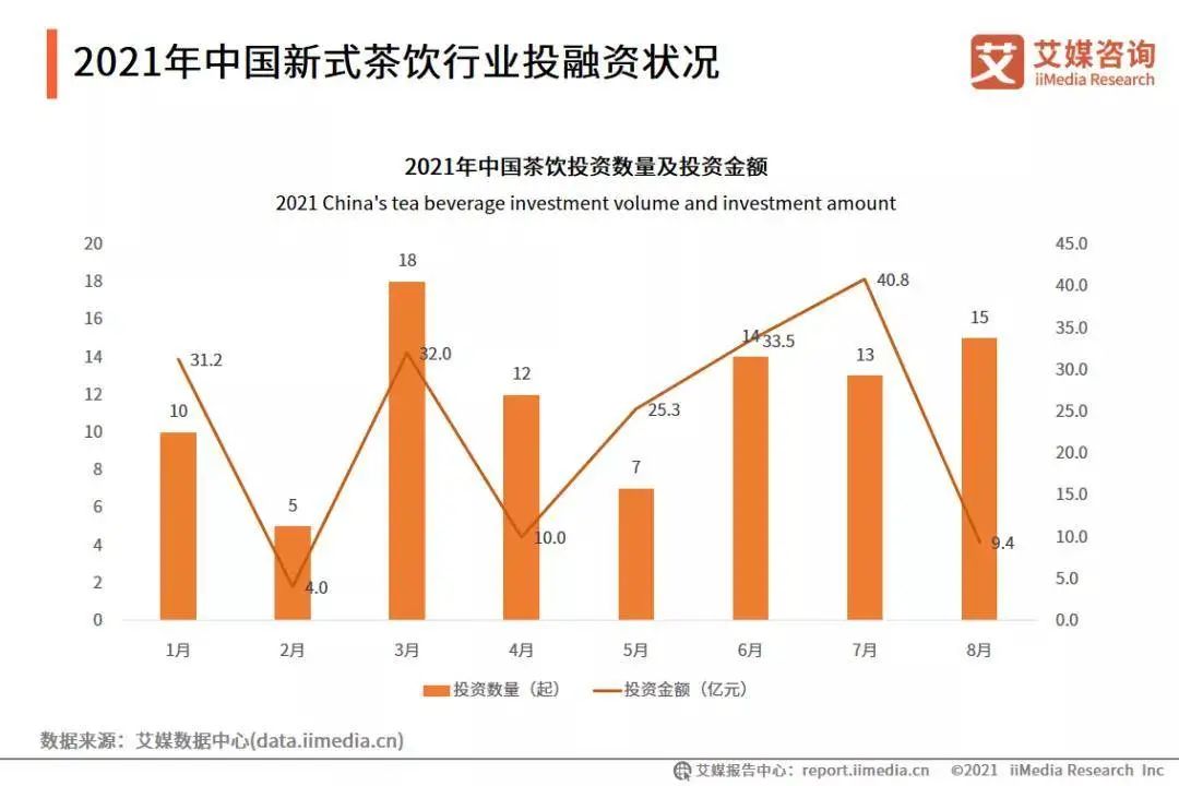 艾媒咨询数据显示,2021年全国存活超过1年的奶茶店占比仅为18.8%。但2021年新式茶饮行业共完成了32笔融资,总金额超过140亿元,融资金额再创历史新高。