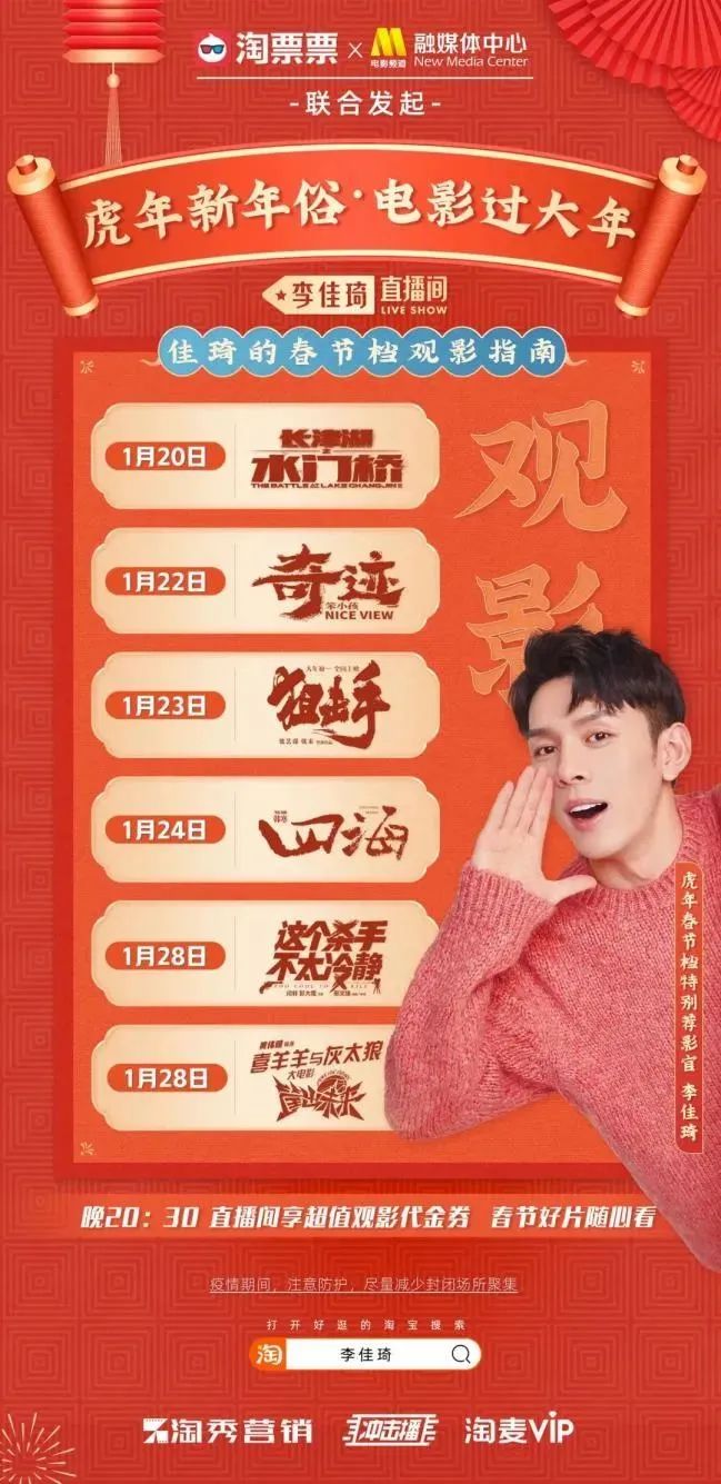 在一众平台中,淘宝是唯一的纯电商平台,其参与电影营销的形式则是借助淘宝直播间来实现。自2019年《受益人》起,淘宝直播卖票一度成为风靡整个电影圈的新锐玩法,无数新片主创走进直播间与头部主播一同宣传带货,像春节档、国庆档这类重大档期更是绝不缺席。