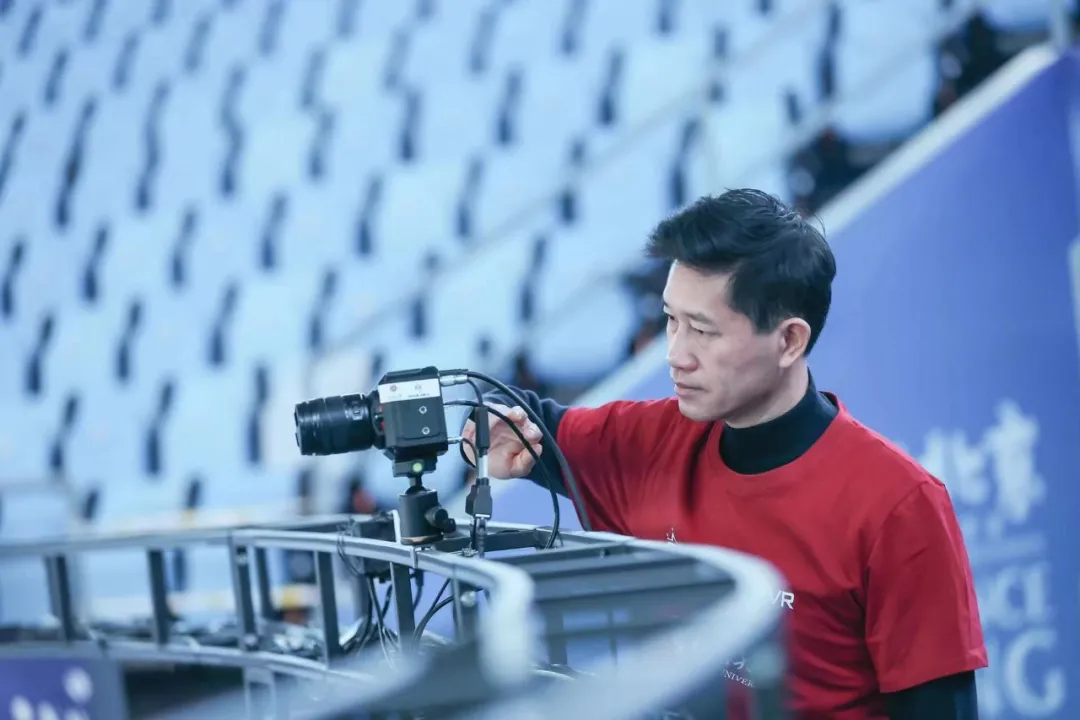 研究人员会根据场馆情况布置多台摄像机,记录比赛现场的精彩画面。他们在首都场馆部署的40台4K阵列摄像机和3台可实现8K VR直播的相机。