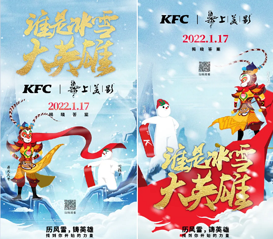 颇为热血的宣传短片,贴近冬奥竞技中饱含的拼搏、团结等精神,搭配运动员主题海报,为肯德基品牌文化深远赋能。该短片同属于“开始的力量”系列宣传片,截至目前,肯德基已连续5年发布该主题系列短片。本次,肯德基立足春节的特殊节点,将冬奥与“开始的力量”结合,既延续了过往传统营销模式,使用户形成一年一度观看该系列短片的习惯,又别具新意。同一时刻,肯德基与“上美影”的合作也在继续,其联合打造的《历风雪 铸英雄》宣传片,再度集结雪孩子、孙悟空等童年IP。两部短片风格各异,却以共同助力冬奥的核心,凝聚成周全成熟的一体化营销运作模式,使肯德基品牌迸发出新一年“开始的力量”。