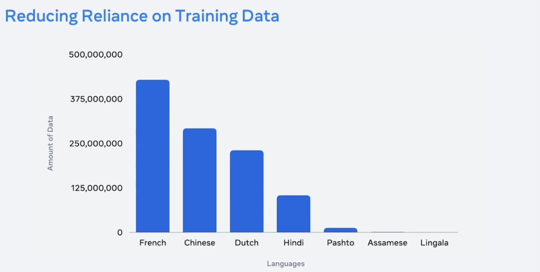 除此之外,Meta还可以自动创建一些翻译数据的示例,而无须雇用人员手动翻译大量数据。目前,Meta已经支持一百多种语言实现自动创建数据集,并且部分数据集开源。