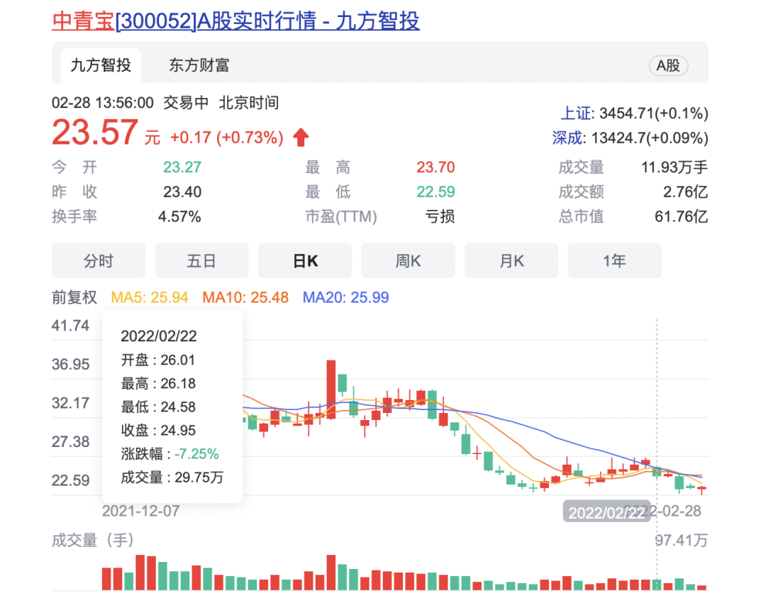 2月22日,天眼查信息显示,腾讯、字节跳动、网易等多家互联网公司或旗下子公司申请的与“元宇宙”有关的商标被驳回。同日,国内元宇宙概念股龙头中青宝股价下跌了7.25%,天下秀股价下跌了4.74%。