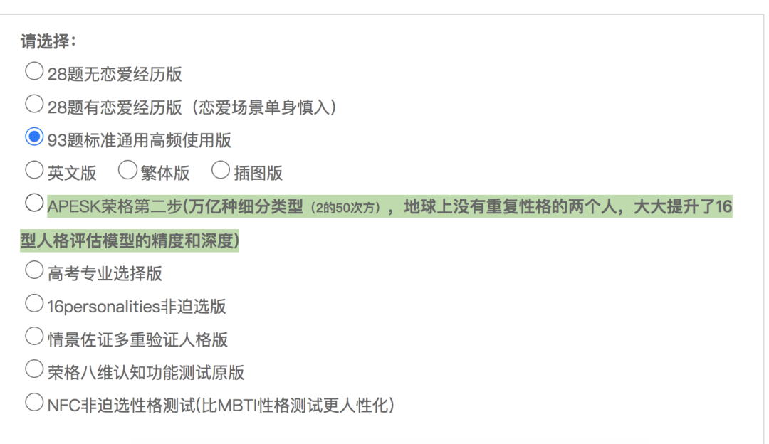 而这套商业模式,很快就在国内生根发芽。在测试类型上,市面上各类名目的测试琳琅满目,呈现出多样和复杂性,以MBTI为例,就有28题、93题等更多的版本以供选择,为了方便信息检索的便利,有很多商家利用信息差,兜售各种类型、各种版本的性格测试,以满足测试这一需求。