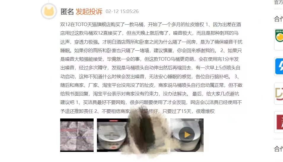 界面新闻记者从网端多个平台获悉,有不少消费者反映称,TOTO存在产品质量差、售后拖沓不处理等问题,营销消费者购买和使用体验。
