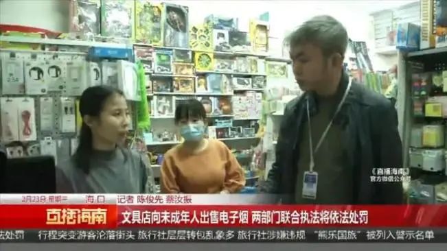 2月23日,海南台曝光海口一文具店向未成年人出售电子烟,举报者称“开始就发现小孩说买电子烟过来抽着玩,他们大概是11、 12岁,4个人合伙买一只,轮流抽”。