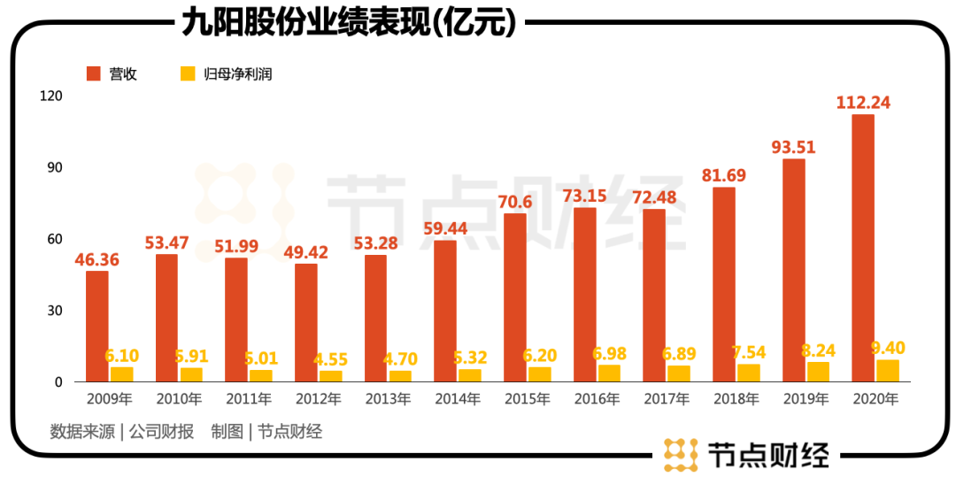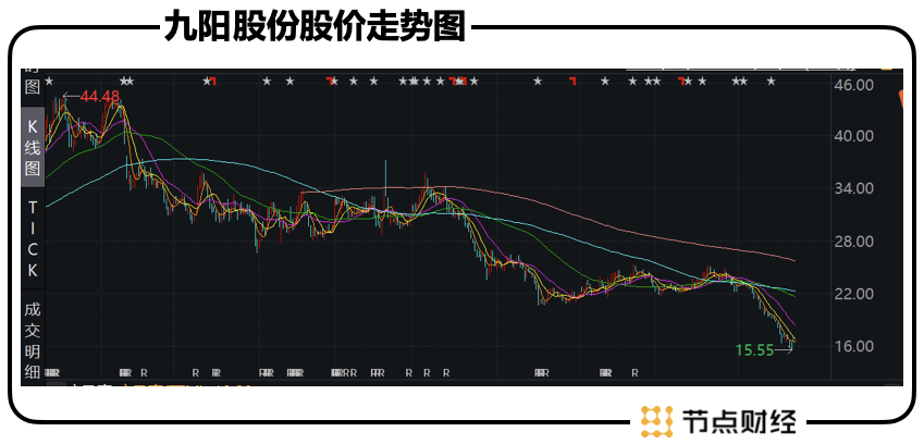 抛开宏观因素引发的波动,节点财经认为,企业生命周期和业绩增长的可持续性,是导致九阳股份股价下挫的重要原因。