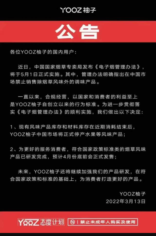 新规影响着这条产业链上的所有人:品牌商在《办法》颁布两天后就向渠道、用户发出通知,计划停止生产水果等风味产品;零售商在利用库存做最后的收割;消费者不得不加价购买烟弹。