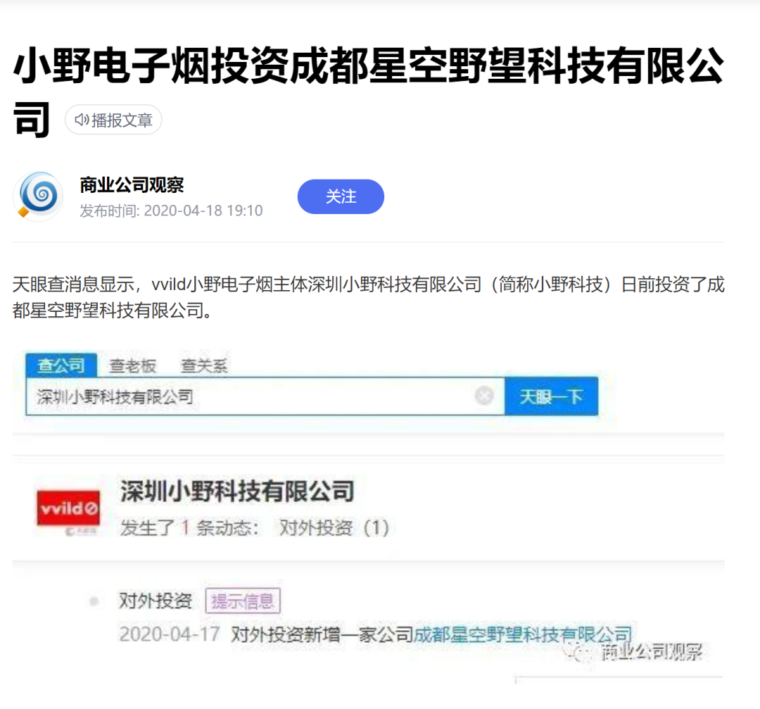 值得一提的是,小野电子烟也是成都星空野望科技有限公司的投资方之一,老罗悄然完成了一次自己的“经济内循环”。