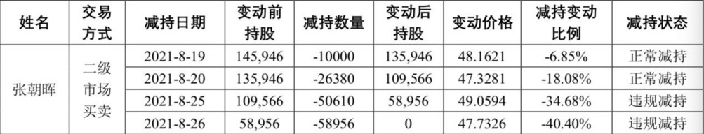 张朝晖前两次减持股份共计36380股,占手中股票份额的24.93%,此时并未构成违规减持。