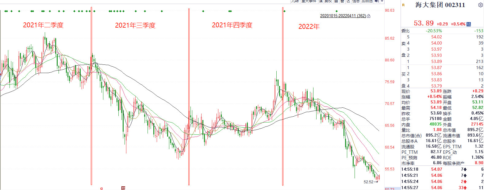 受业绩影响,海大集团股价自2021年下半年起便震荡下行。2022年公司业绩继续承压,叠加大盘整体下行等因素,年初至今股价跌幅达26.48%。