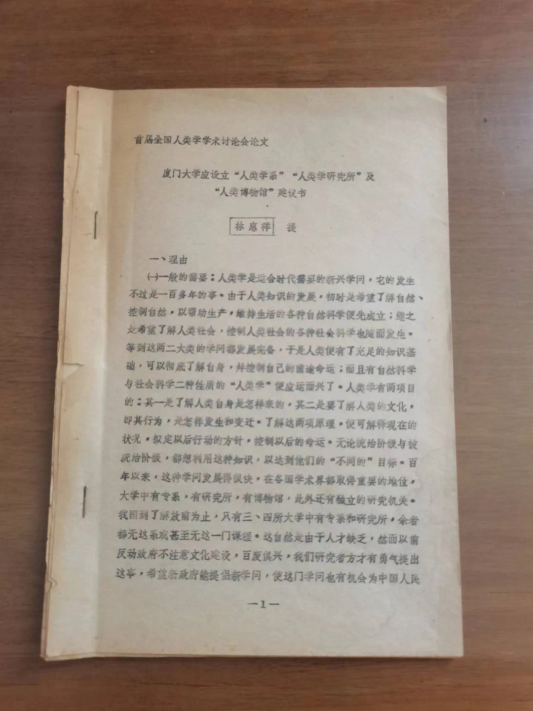改革开放后,为实现先师遗愿,时任厦大历史学系教授的陈国强(林惠祥曾经的弟子兼助手)便忙碌了起来。他四处奔走,一九八一年在厦门成功召集了“首届全国人类学学术讨论会”,与会者九十多人,来自全国各地。他安排印制了“林氏建议”,并提交讨论会。一九八三年,他发表了一篇题为《上下而求索——林惠祥教授及其人类学研究》(《读书》一九八三年第七期)的文章,纪念老师,呼唤学科重建。一九八四年,陈老师如愿以偿,办起了人类学系和研究所。