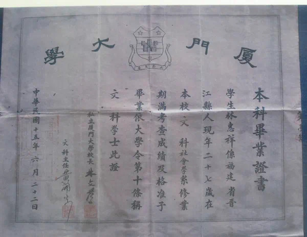 林惠祥先生是我的大学老师们的老师,我的师祖。他一九〇一年出生于泉州府晋江县莲埭乡(今之石狮市蚶江镇),又是我的同乡前辈。一九五八年,师祖年未及花甲便因病过世,我们这些徒孙都没有见过他。