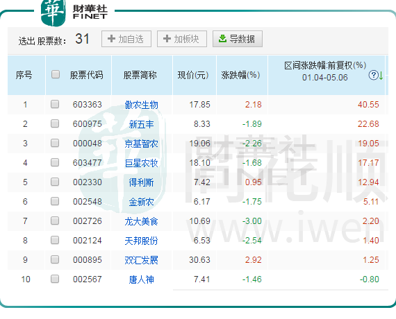 二级市场上,年内至今,猪企养殖户包括傲农生物、巨星农牧、得利斯、金新农、龙大美食、天邦股份共6只个股实现上涨,其余大部分均呈下跌走势。