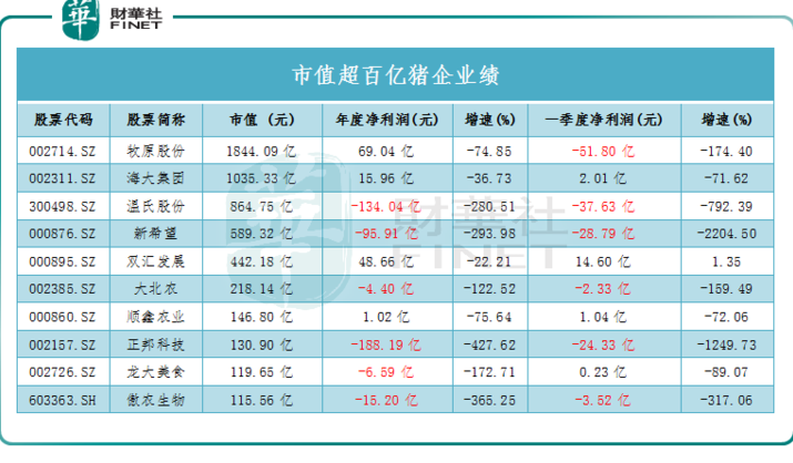 一季报数据显示,牧原股份、温氏股份、新希望、大北农、正邦科技等均出现深度亏损。其中,实现全产业链布局的新希望同比降幅高达22倍。