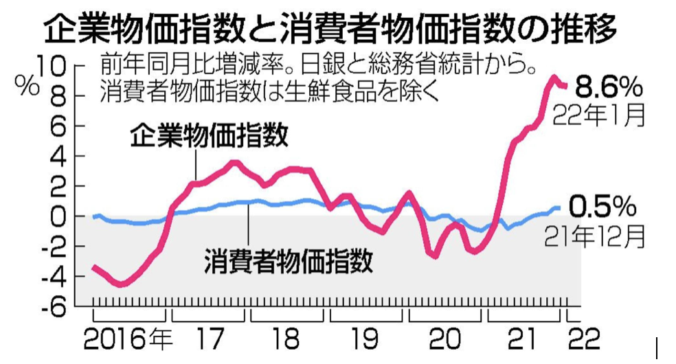 该数字不仅与美国8.3%和欧元区7.5%的CPI增幅相比微不足道,距离日银制定的2%通胀率亦有距离。若扣除能源类价格的涨幅,日本实际的CPI甚至可能为负值,即反而存在通缩风险。而且该通胀率主要由供给侧驱动,而不是日银所希望的需求端驱动。