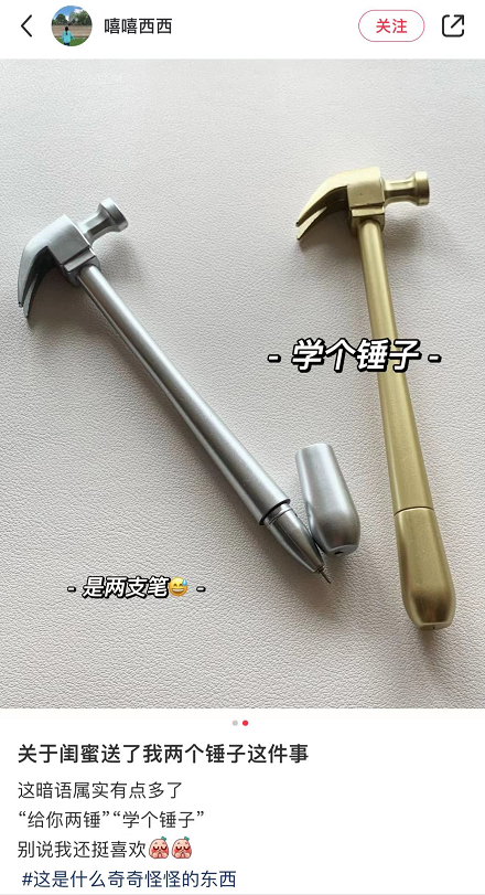 锤子笔明明是文具用品却散发出摆烂的气息,完美表达网友一边骂骂咧咧,“学个锤子”,一边学个不停的矛盾状态。
